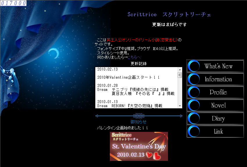 イベントの方の予告ページも更新いたしましたので、バレンタインは収納いたしました。